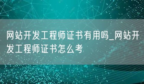 网站开发工程师证书有用吗_网站开发工程师证书怎么考
