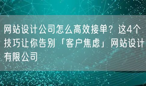 网站设计公司怎么高效接单?这4个技巧让你告别「客户焦虑」网站设计有限公司