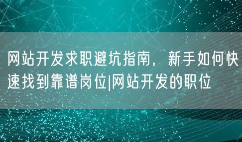 网站开发求职避坑指南,新手如何快速找到靠谱岗位|网站开发的职位