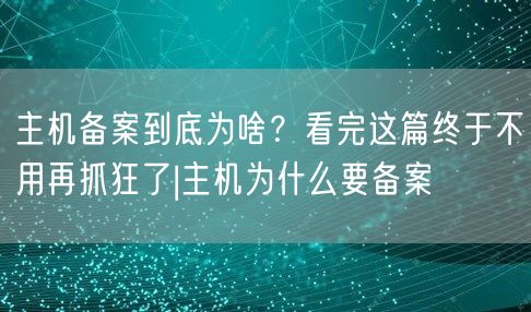 主机备案到底为啥?看完这篇终于不用再抓狂了|主机为什么要备案