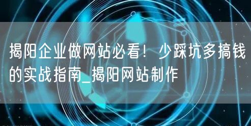 揭阳企业做网站必看!少踩坑多搞钱的实战指南_揭阳网站制作