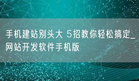手机建站别头大 5招教你轻松搞定_网站开发软件手机版