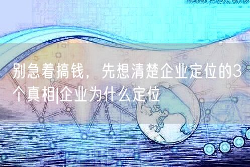 别急着搞钱,先想清楚企业定位的3个真相|企业为什么定位