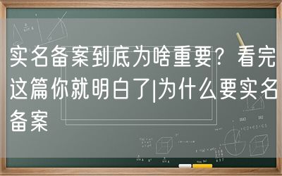 实名备案到底为啥重要?看完这篇你就明白了|为什么要实名备案