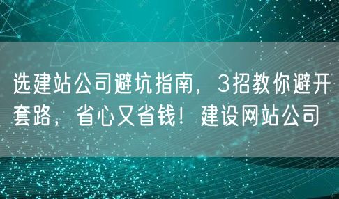 选建站公司避坑指南,3招教你避开套路,省心又省钱!建设网站公司